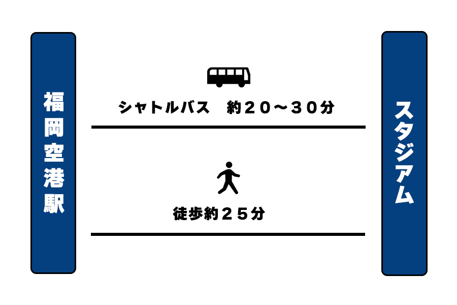 | ルート | 福岡市地下鉄「福岡空港駅」下車 そのままスタジアムへ徒歩 |