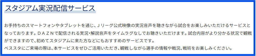 タイムラグなしでJリーグ公式映像の音声が聴ける無料サービスが提供されています。